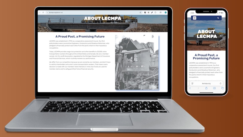 Premier Communications Group redesigned LECMPA’s website with a modern look and a focus on creating a more streamlined, user-friendly experience, complete with enhanced mobile responsiveness. The new site includes dedicated benefit pages for each group, an FAQ section to help members find information quickly, and clear details about coverage options. We also incorporated new photography of transportation workers, a historic timeline featuring archival images, and video clips of current members — bringing LECMPA’s story to life. Our design resulted in a refreshed, modern website that honors the rich legacy of LECMPA while meeting the needs of today’s members.